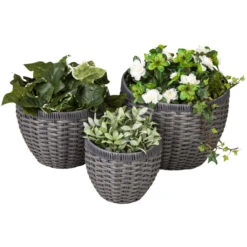 Hängepflanzkorb – Grau/braun – Aus Kunststoffrattan – Ca. 22 X 14 X 14/29 Cm