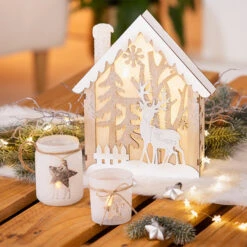 LED-Dekoglocke – Rentiere – Aus Glas – Ca. 10,5 X 10,5 X 17 Cm